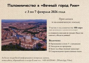 Напоминаем, что в феврале с 3 по 7 запланирована паломническая поезда в Рим. Есть свободные места. Обращаться к сестре Елене тел. +420 603290401 (WhatsApp, Viber)
