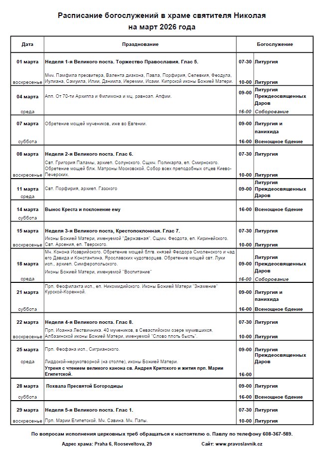 Расписание на март — скачать в PDF